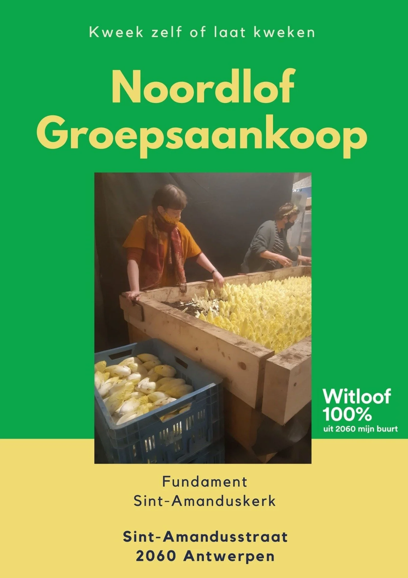 Noordlof is lokaal gekweekt witloof in de kelder van de Sint-Amanduskerk in de Van Kerckhovenstraat, 2060 Antwerpen en een project van Fundament 2060 VZW.