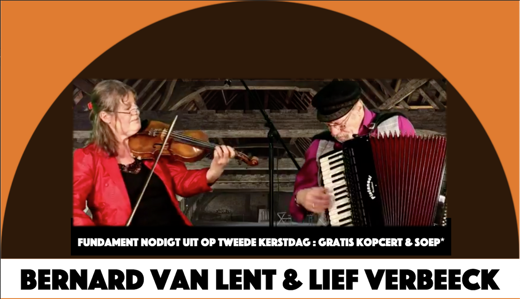 Zondag 26 december 2021, 15u, in de Kop, Sint-Amandusstraat: Bernard Van Lent & Lief Verbeeck. Gratis, maar met respect voor de coronaregels.